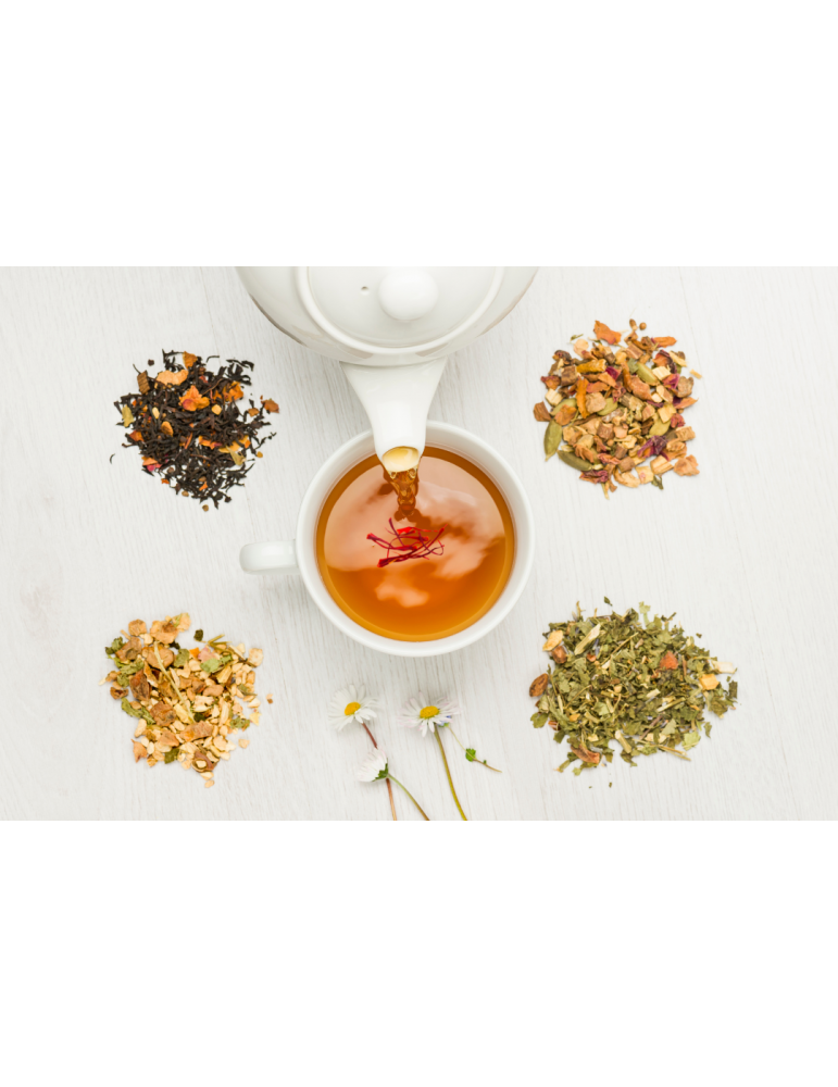 Dear tea-loving friends, creating and designing your own custom blend is now more effortless than you think. You can pick up to four ingredients from our best selection of organic loose-leaf teas, flowers and herbs that can be packed in a craft paper pouch OR into 100% biodegradable, cotton and plastic-free tea bags.